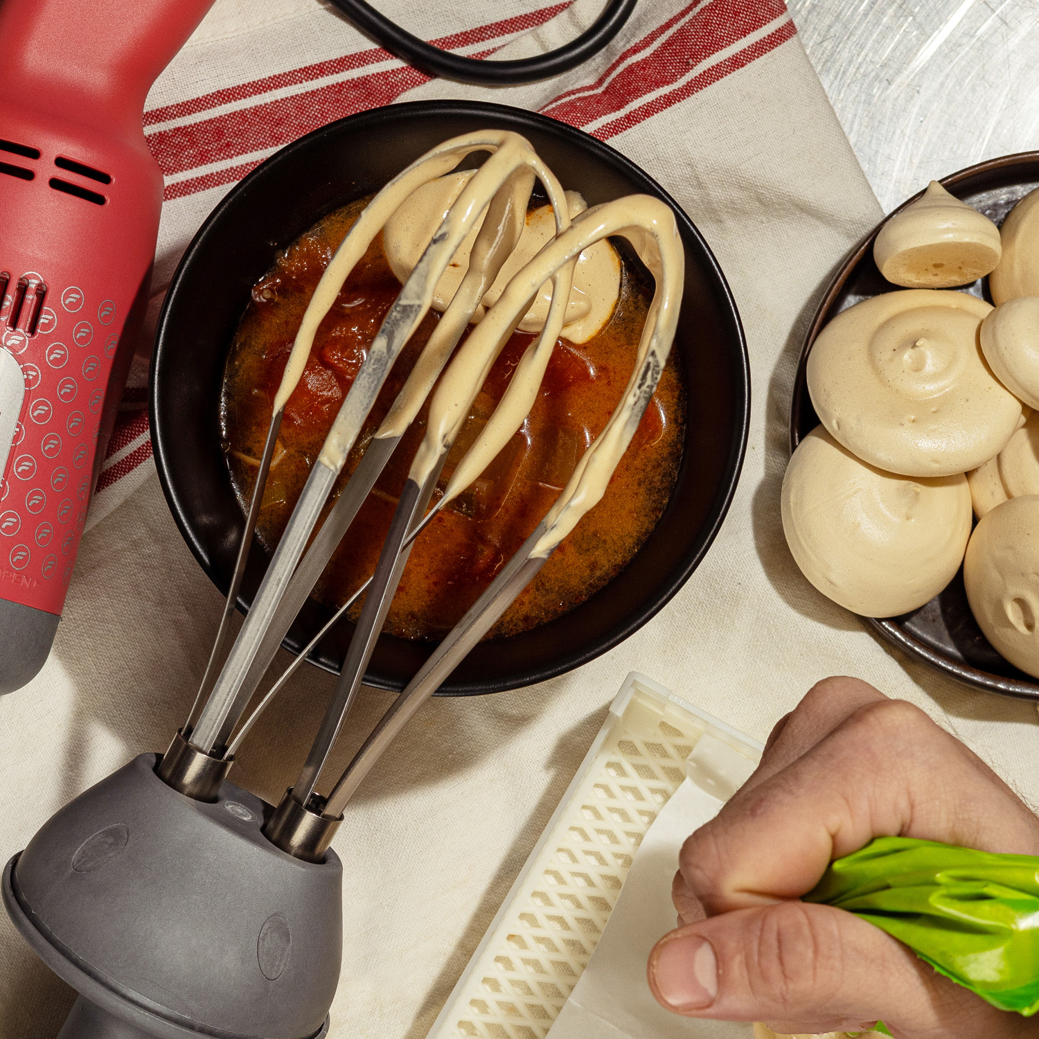 Stainless steel whisk, easy to remove for cleaning. Ideal for whipping (egg whites, cream, etc.)